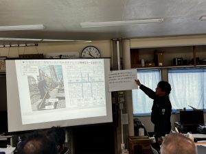 担当者がパワーポイントで説明し、全員で意見を交換。